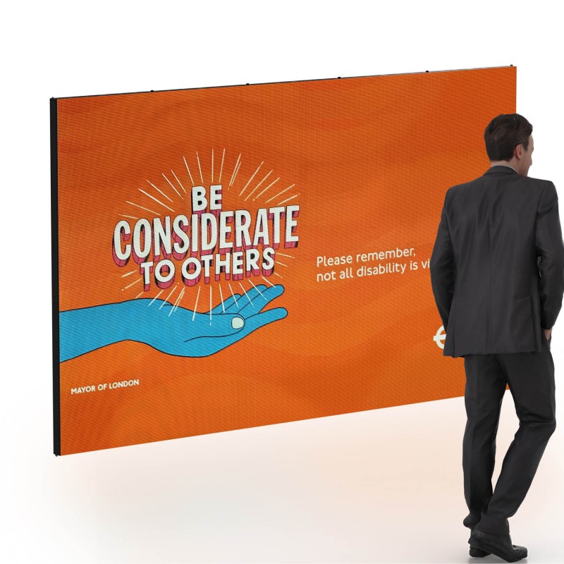 Ecran Led Indoor cu rezolutia P2.5, cu suprafata de 6.1 mp (3200 x 1920 mm) pentru interior, complet echipat pentru evenimente, concerte sau publicitate.