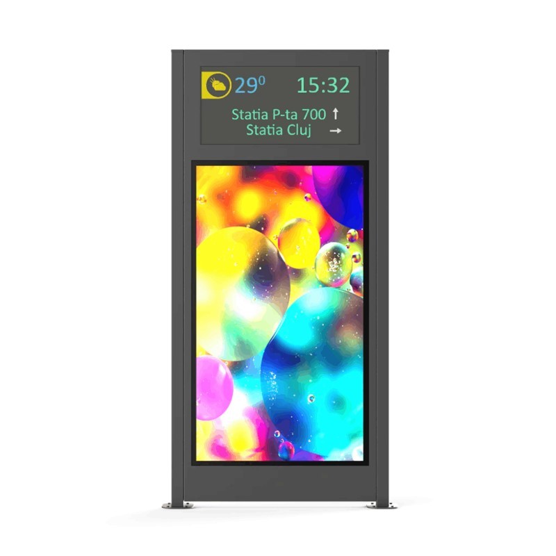 Sistem compact cu design modern și minimalist, creat special pentru a oferi atât publicitate, cât și informare în stațiile de tramvai sau autobuz.