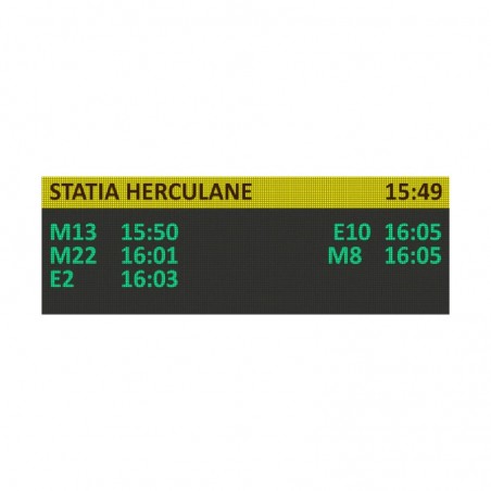 Acest panou LED pentru informare calatori este o soluție robustă și modernă pentru afișaj digital în aer liber, conceput să capteze atenția și să reziste în condiții meteorologice variate. Ideal pentru promovare, informare sau ghidare, acest panou asigură vizibilitate excelentă și performanță de lungă durată.