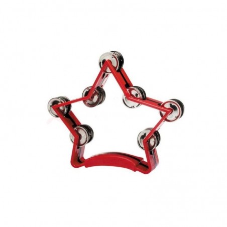 Tamburină de mână Parrot MT3 STAR de culoare roșie, confecționată din plastic durabil, cu 7 perechi de clopoței dubli