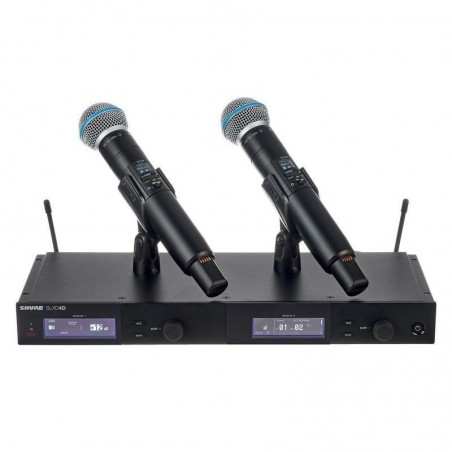 Sistem microfoane wireless Shure SLXD24D/B58 K51 format din: receptor wireless dual channel SLXD4D și două transmițătoare SLXD2/B58, cu bandă de frecvență K51: 606 - 670 MHz