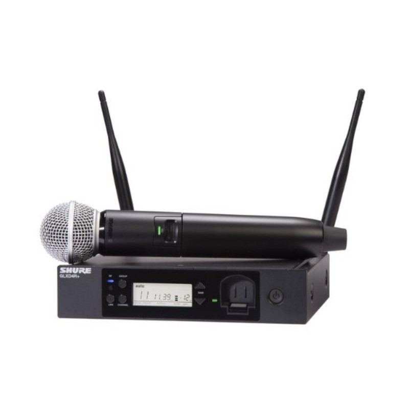 Sistem wireless cu microfon voce Shure GLXD24R+/SM58 format din microfon vocal SM58 (transmițător portabil GLXD2+) și receptor rack GLXD4R+ de 9.5”, cu până la 8 sisteme simultan (cu Frequency Manager 16)