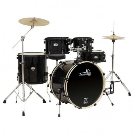 Set de tobe acustice Tamburo T5P20DARK de nivel entry-level, cu un sunet puternic și o estetică îndrăzneață, potrivite pentru o personalitate muzicală puternică. Cu un design „total black”, cu o acoperire PVC lucioasă și componente negre satinate, acest set oferă atât un look impresionant, cât și un sunet bogat și plin