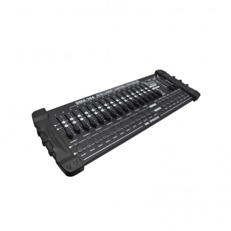 Controler DMX cu 384 de canale pentru efecte de lumini compatibile cu protocolul DMX. Poate controla pana la 12 unitati, fiecare cu cate 32 de canale DMX (in total 384 canale). Vine dotat cu 30 de banci a cate 8 scene programabile (cu 240 de scene programabile total).