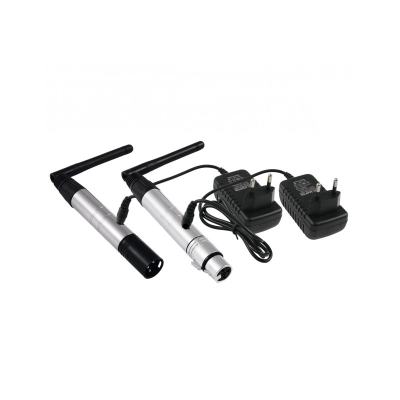 Transmițător miniatural wireless pentru transmisie de până la 126 canale DMX. Este echipat cu conector XLR tată cu 3 pini și antenă pivotantă. Ajută la eliminarea cablărilor între controlerele DMX și unitățile controlate din instalațiile de lumini. Transmisie fără interferențe în banda de 2.4 GHz, pe o distanță de până la 400 m.
