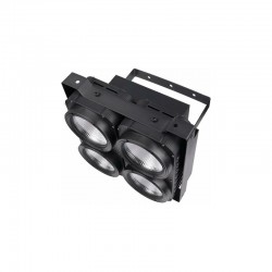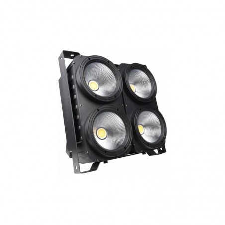 Blinder LED 4x100W, un spot de scenă complet profesional echipat cu patru diode LED COB de 100 de wați, care emit lumină albă caldă și rece. Acest iluminator versatil creează atmosfere captivante pentru diverse evenimente, luminând scene și producând efecte stroboscopice.