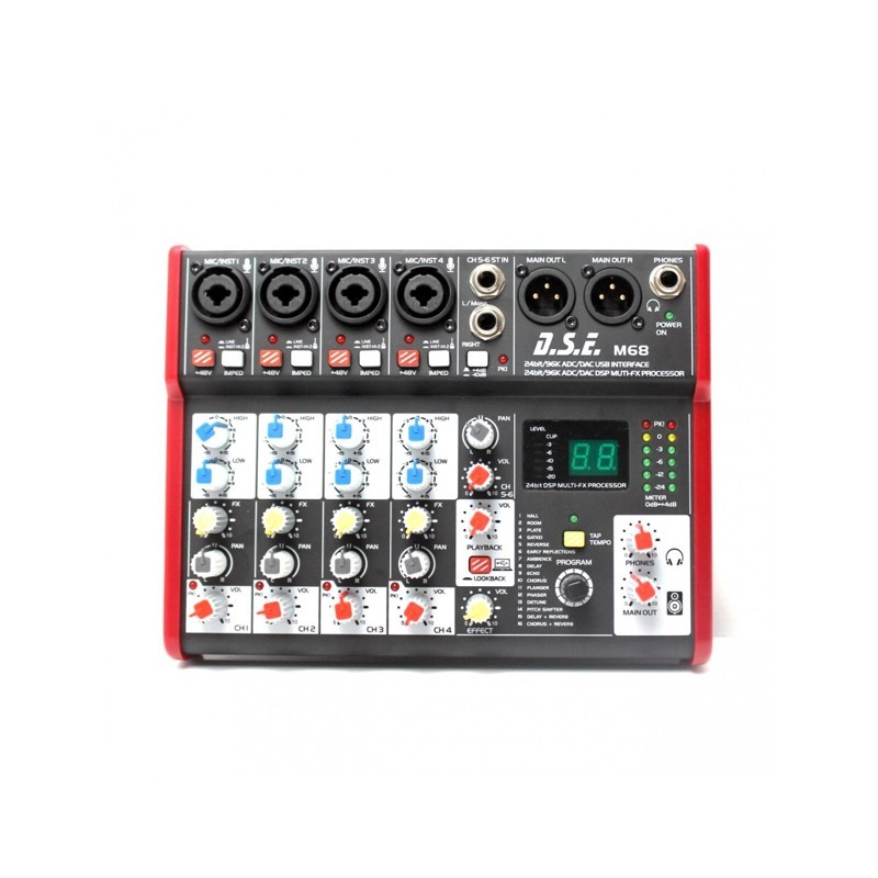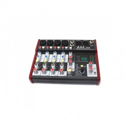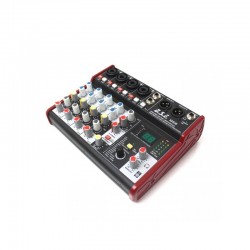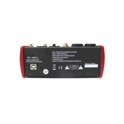 Mixer audio compact (interfata audio) cu 5 canale de intrare, iesire L/R XLR, iesire separata pentru casti, EQ pe 2 benzi, procesor de efecte multi-FX pe 24biti, interfata USB 2.0. Phantom power +48V pe canalele de microfon.