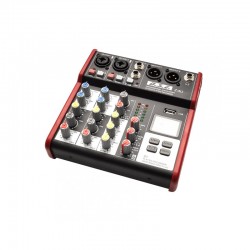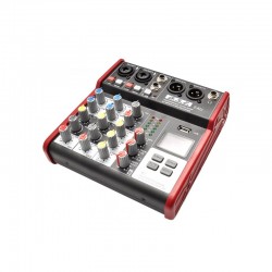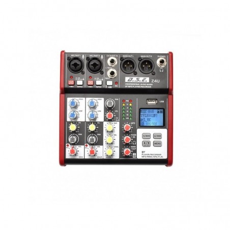 Mixer pasiv DSE Z4u, cu 2 canale mic/line (cu compresor si phantom power +48V), 1 canal stereo, interfata audio USB 24-bit, 49 Khz, redare audio prin USB si Bluetooth. Procesor de efecte. Iesire stereo XLR. Inregistrarea se face direct pe USB.