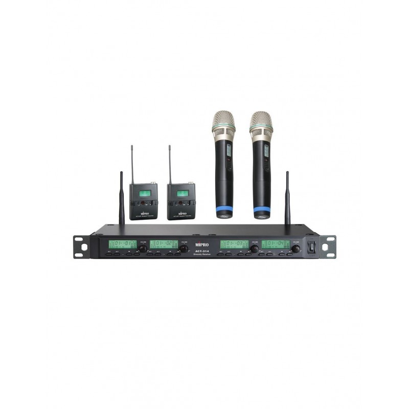 Sistem wireless format din 1 x Receptor ACT-314B si 2 x microfon ACT-32H-80 avand capsula MU-80 si 2 x transmitator de tip bodypack ACT-32T. Puterea de transmisie comutabila 10/ 30 mW.