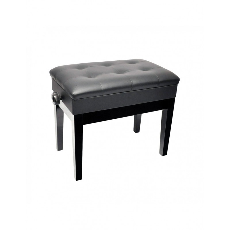 PB002BK este o bancheta de pian reglabila pe inaltime (490x590mm), fabricata din lemn solid, picioare isurubate in rama scaunului, sezut din imitatie de piele si compartiment pentru partituri Finisaj: negru lucios ideal pentru piane negre sau albe