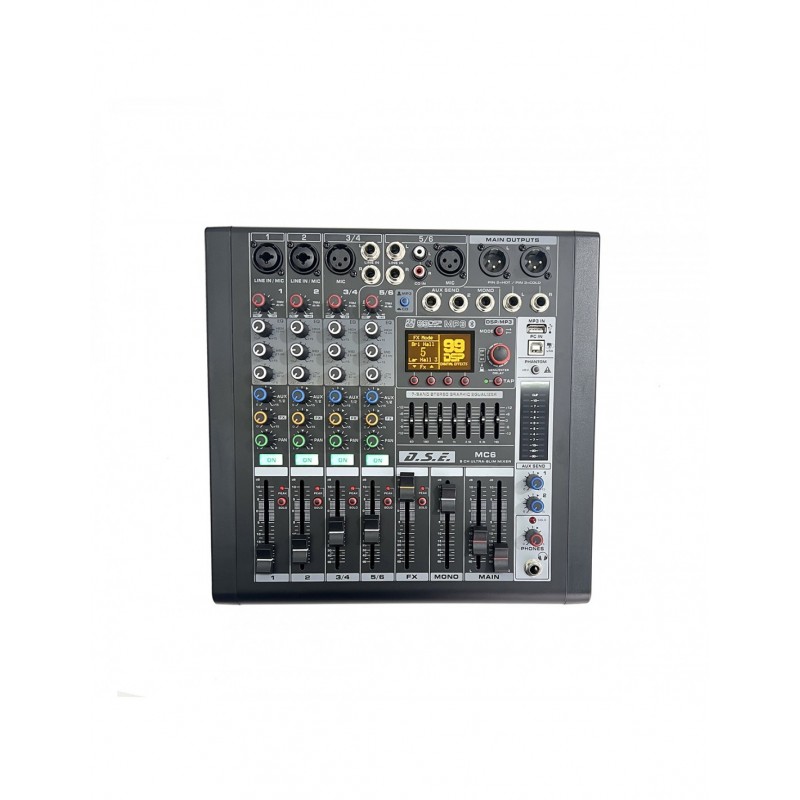 DSE Pro MC6 este un mixer pasiv cu 6 canale (4 intrari de microfon si 2 intrari de linie), modul cu redare bluetooth si USB si placa de sunet incorporata.