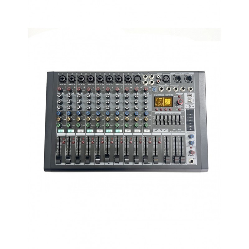 DSE Pro MC12 este un mixer pasiv cu 12 canale (10 intrari de microfon si 2 intrari de linie), modul cu redare bluetooth si USB si placa de sunet incorporata.