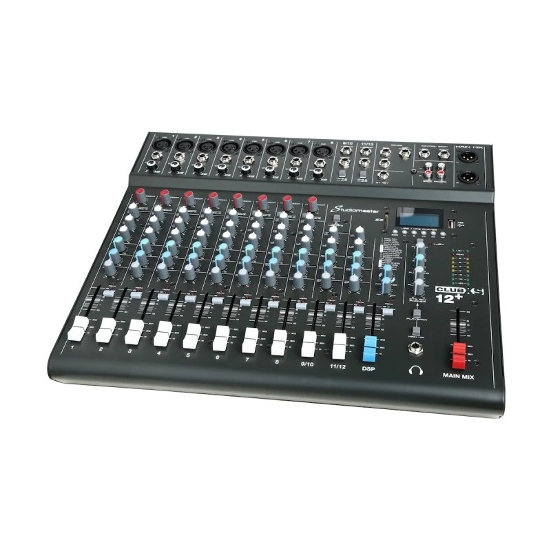 Studiomaster CLUB XS12+ - Mixer analog cu design compact, carcasă rezistentă, efecte DSP și tehnologie Bluetooth, ideal pentru concerte acustice, trupe în format trio și evenimente de dimensiuni medii.