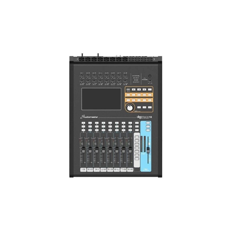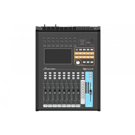 Studiomaster Digitrack 18 Digital Mixing Console - Mixerul digital ultracompact Digitrack 18 de la Studiomaster combină funcțiile unui mixer hardware cu frumusețea și simplitatea unui control cu ecran tactil.
