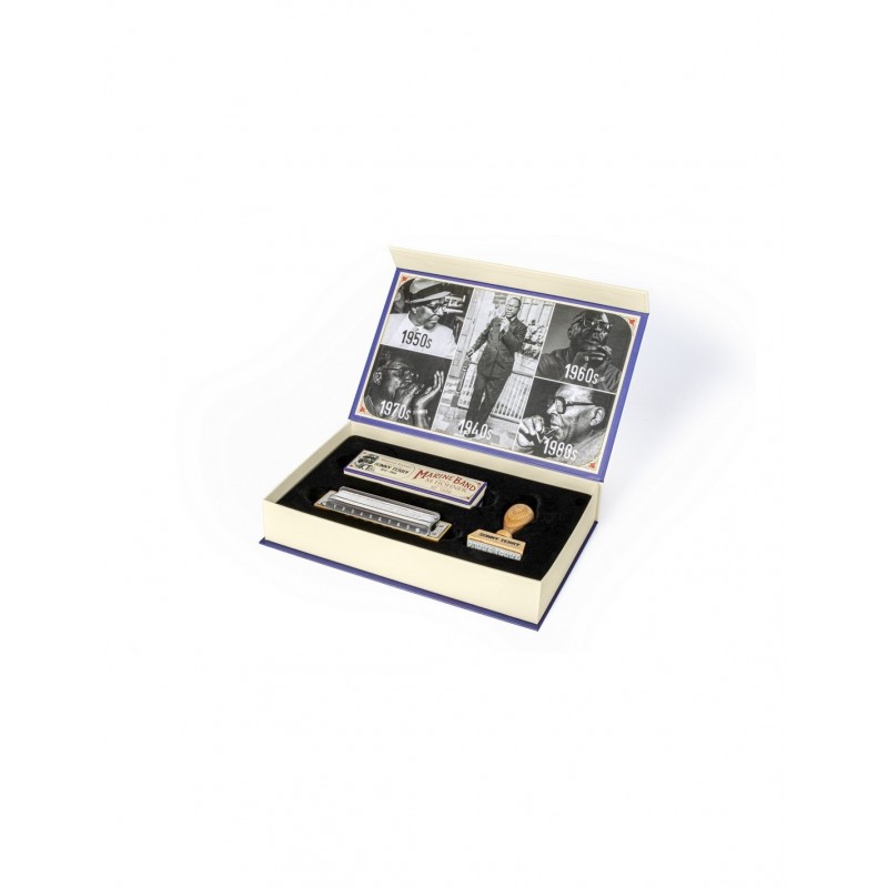 Muzicuta Hohner, diatonica, cu placi de acoperire din otel inoxidabil, cu un design Sonny Terry.